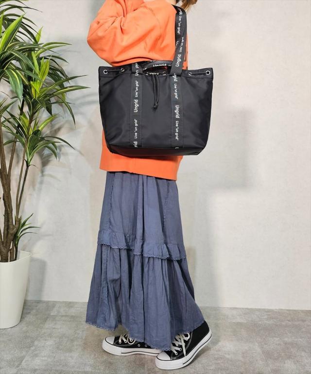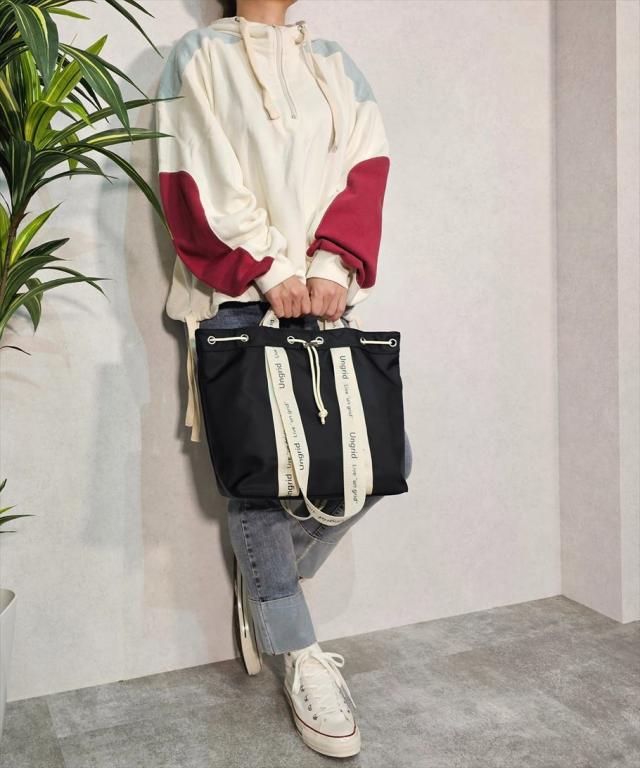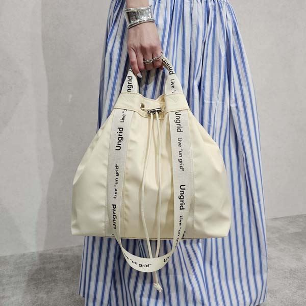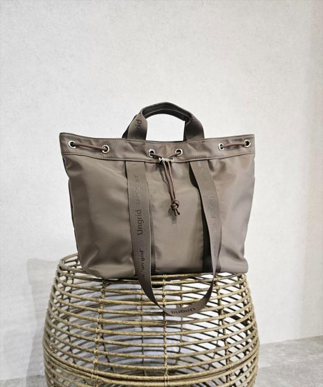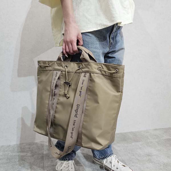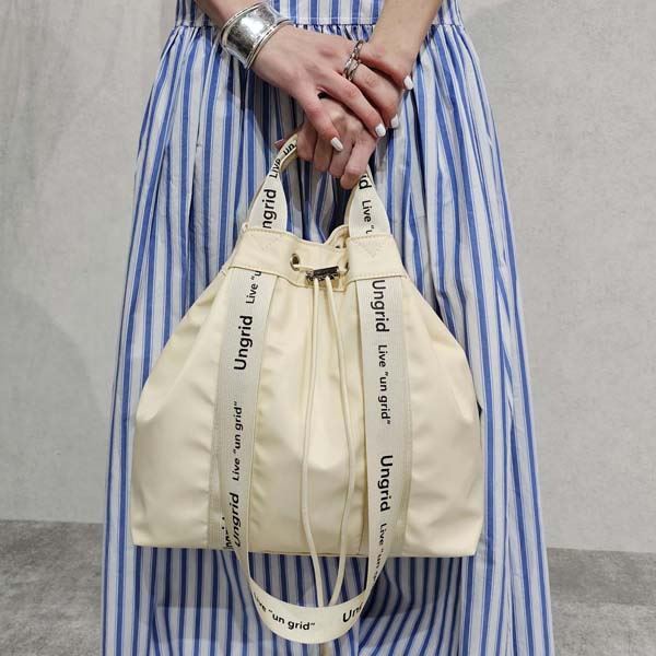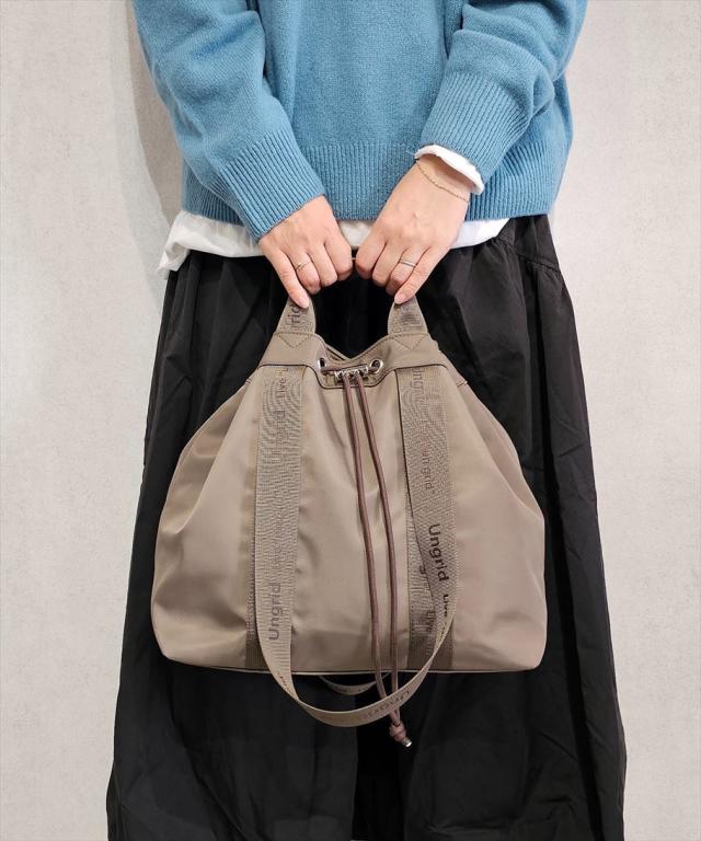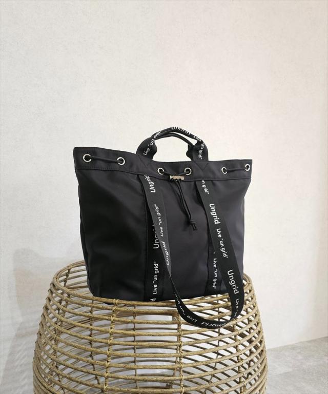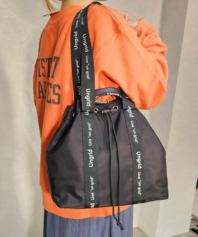 アングリット(Ungrid)/ナイロン ロゴテープ 牛革ハンドル 2WAY 巾着トートバッグ