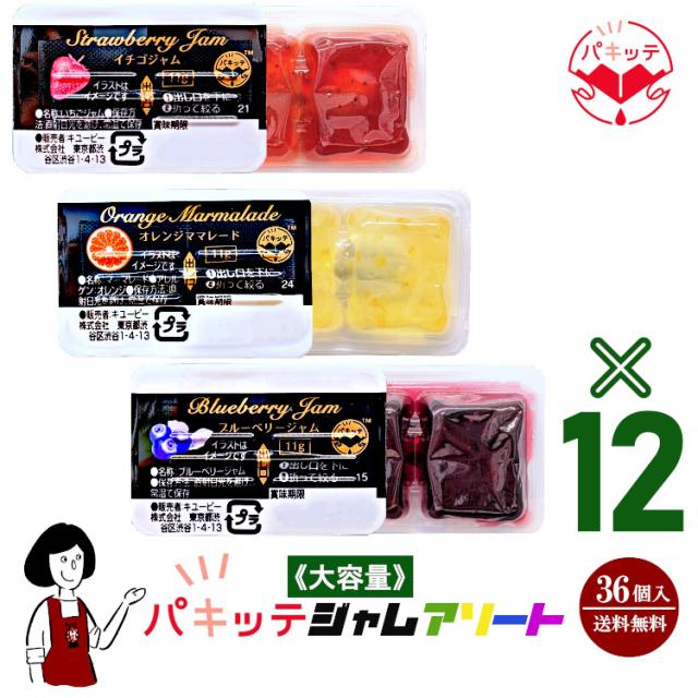 《36個入》パキッテジャムアソート 3種類×12袋(36袋入) /メール便 送料無料 小袋 アソート 使いきり ディスペンパック 携帯用 アウトドア お弁当 イベント テイクアウト こわけや