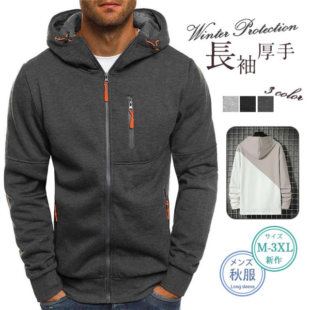 パーカー メンズ 長袖 トップス 秋服 秋物 フード付き トレーナー スポーツパーカー 通勤 通学 アウターメンズ