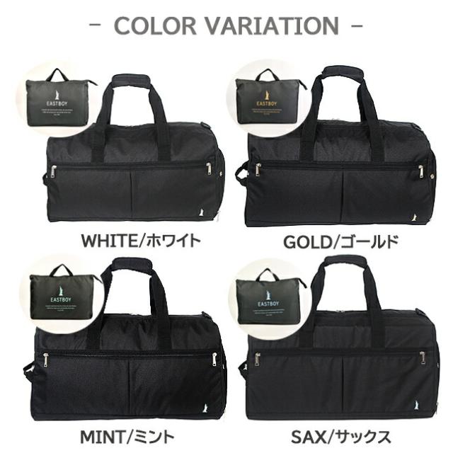 ボストンバッグ 修学旅行 高校生【eba80】EASTBOY イーストボーイ モンレーヴシリーズ 収納ポーチ付き 折りたたみボストンバッグ 40L 撥水 2泊 修学旅行 林間学校 合宿 部活 研修 旅行 小学生 中学生 高校生 シンプル 女の子 女子 女性 ホワイト ゴールド ブルー グリーン