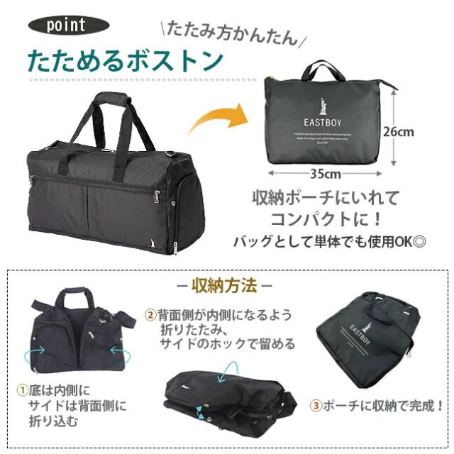 人気ブランドEASTBOYの折り畳みできるボストンバッグ。