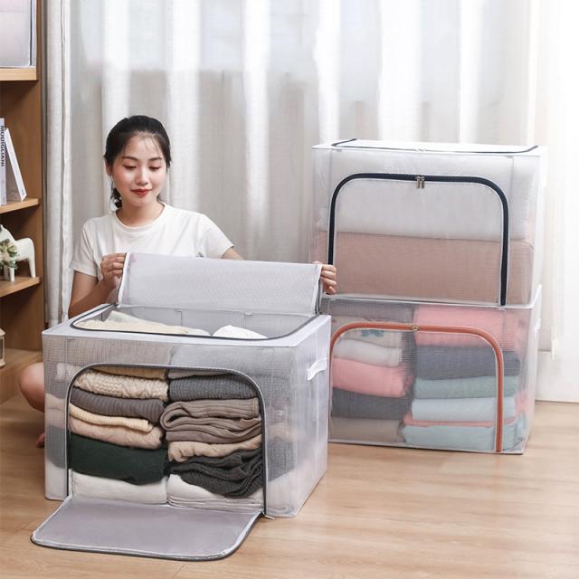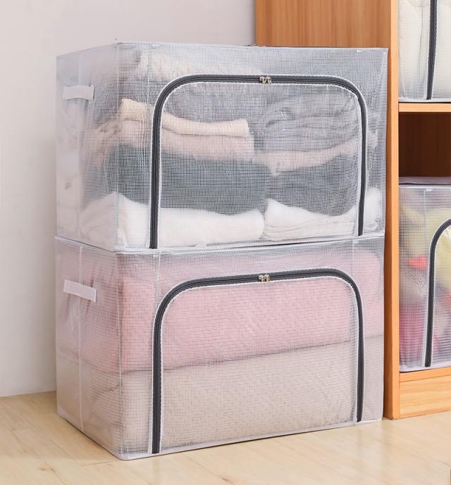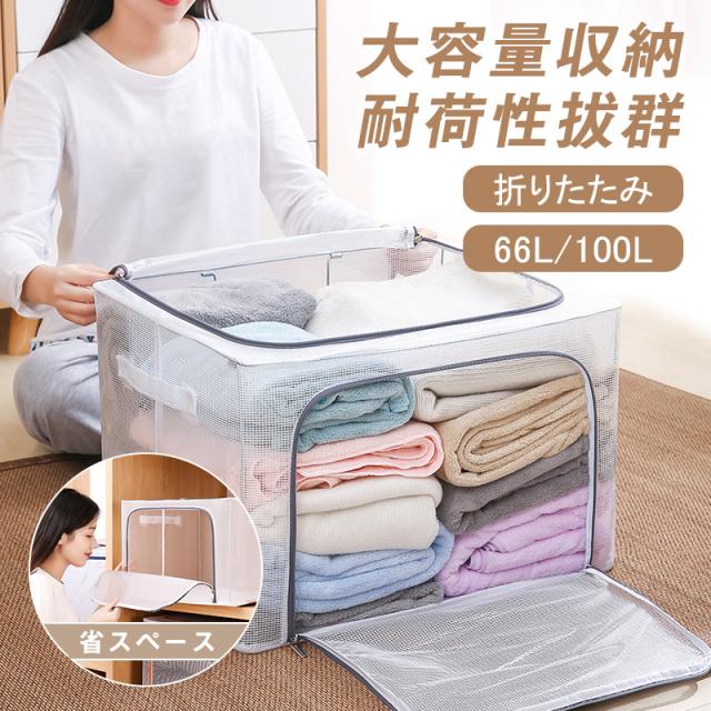 収納ボックス 収納ケース フタ付き 折りたたみ 大容量 衣類用 衣装ケース 透明 鉄骨入り 持ち運び 蓋付き 防塵 防汚 防水 小