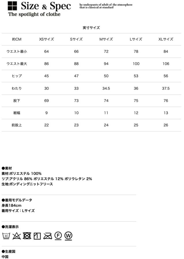 - 身長180センチのがっちり体型で 普段パンツのサイズは34インチで XLを購入しました サイズ感はダボつかずタイト過ぎず 丁度良い感じです