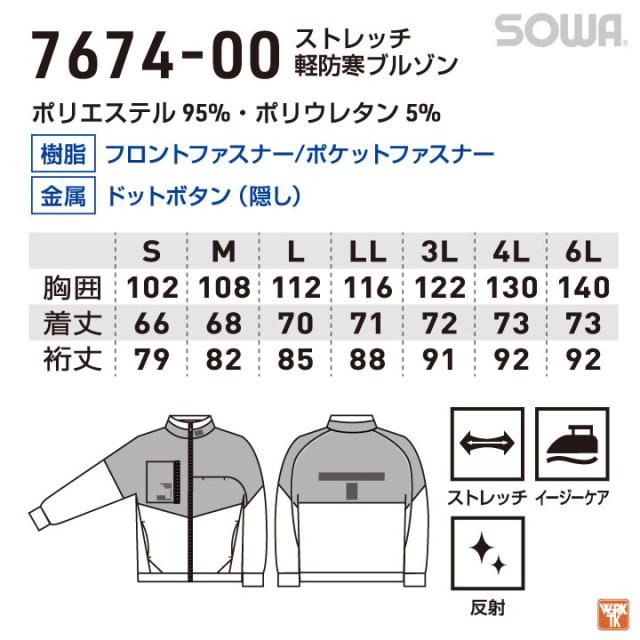 G.G 7674-00 ストレッチ軽防寒ブルゾン 軽さと温かさを併せて持つダンボールニットウェア! 仕事着だけではなく普段着としても着用できるカジュアルライクなデザイン。