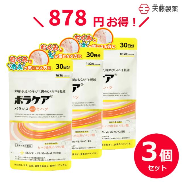 〈機能性表示食品〉 ヒハツ サプリ むくみ 冷え 温活 マルチビタミン サプリメント ミネラル 亜鉛 ビタミン めぐり 血流 血行促進 ボラケアバランスwithヒハツ 機能性表示食品 (3袋セット15%お得) 90日分 1日2粒目安 天藤製薬 BORRA