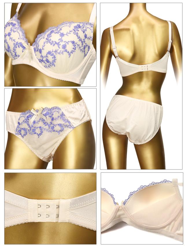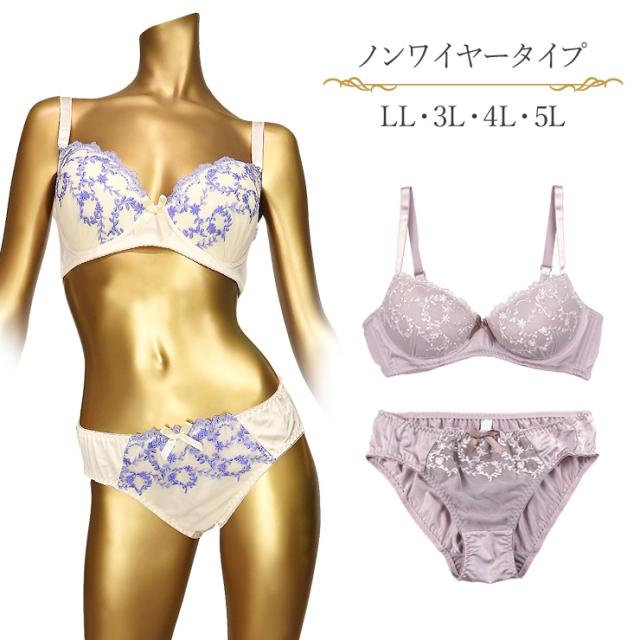 刺繍柄ノンワイヤーブラジャー&ショーツセット。