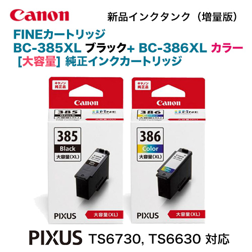 ★注意:代引決済不可★ キヤノン FINEカートリッジ BC-385XL 大容量ブラック + BC-386XL 大容量カラー 純正インクセット (PIXUS TS6730, TS6630 対応)(商品コード:6200C001 + 6222C001)