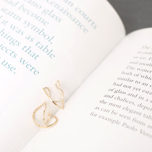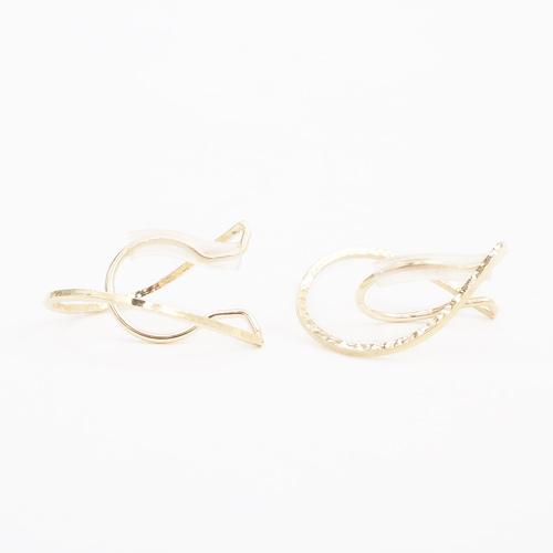 モダンなシェイプが不思議なイヤリングは見る人をくぎづけにすること間違いなしです。