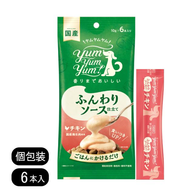 yum yum yum! ふんわりソース仕立て チキン 10g 6本 ヤムヤムヤム 鶏 犬 ペット 栄養補助食品 ソース 食いつき シニア