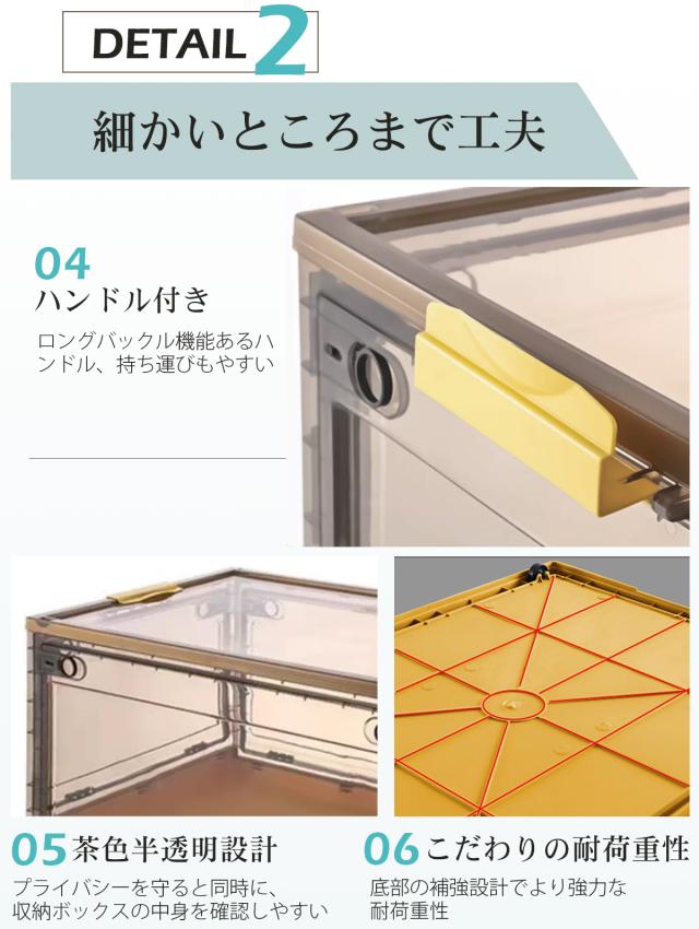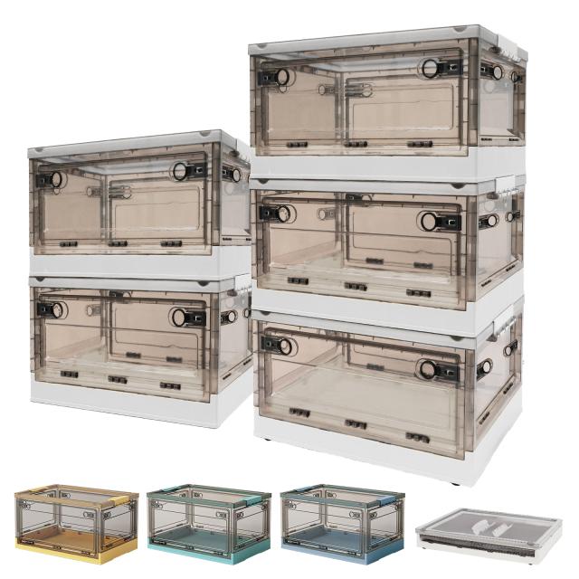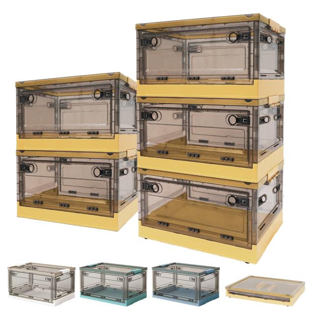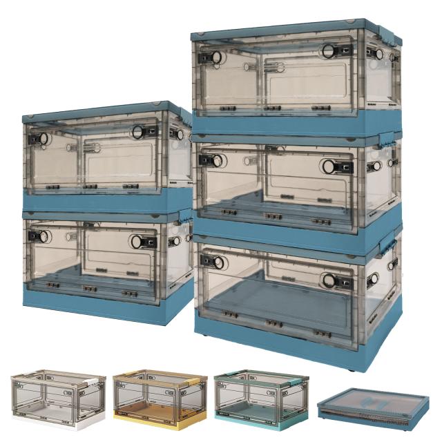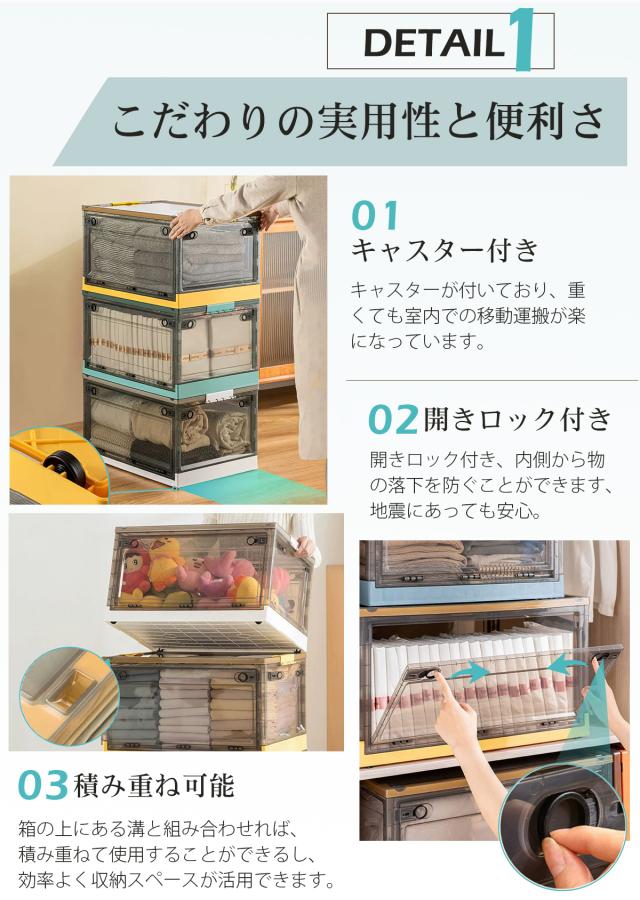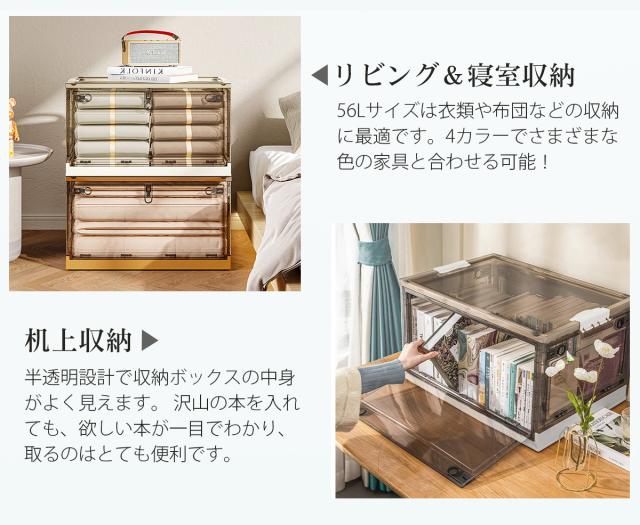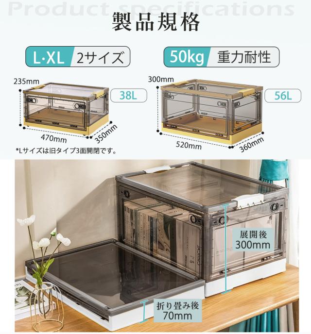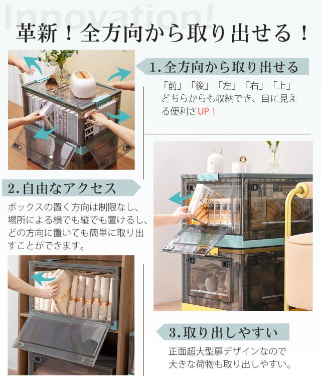 収納ボックス 折りたたみ 【3個】 XL キャスター付き 5方向開く コンテナ ボックス 前開き 収納ケース フタ付き おしゃれ 大容量 クローゼット 押し入れ収納 横開き 衣装ケース コンパクト 積み重ね 衣類 折りたたみボックス 透明 56L