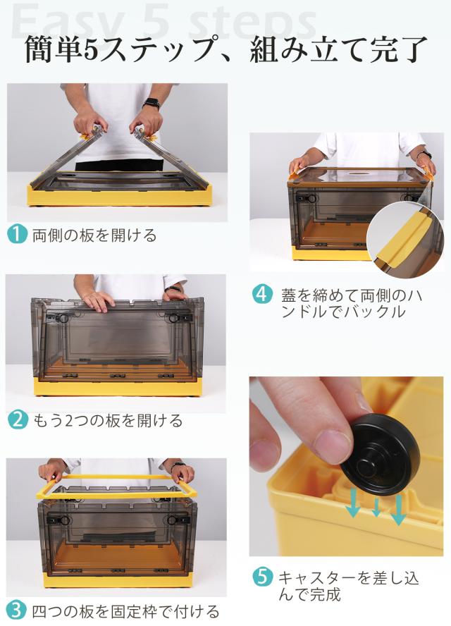◆品名:5ドア 収納ボックス 折りたたみ XLサイズ 【3個セット】 キャスター付き コンテナ ボックス 前開き 収納ケース