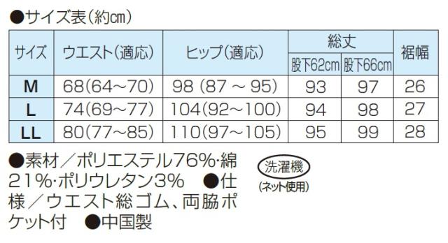 ●仕様/ウエスト総ゴム、両脇ポケット付