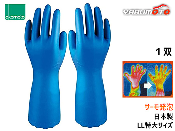■オカモト ビニール手袋 サーモ発泡 LLサイズ 1双 厚手 温かい 作業用 防寒 食器洗い 洗濯 掃除 園芸 洗車 LL 両手分 OG-005LL 送料無料