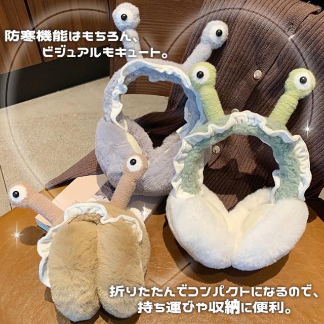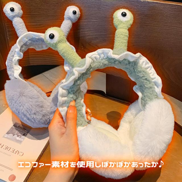 新作 目玉 かたつむり 折りたたみ エコファー 耳あて レディース イヤーマフ 耳当て イヤマフ イヤーウォーマー フェイクファー 冬 秋冬 あったか 防寒 おしゃれ かわいい 大人 ハロウィン コスプレ 仮装 変装