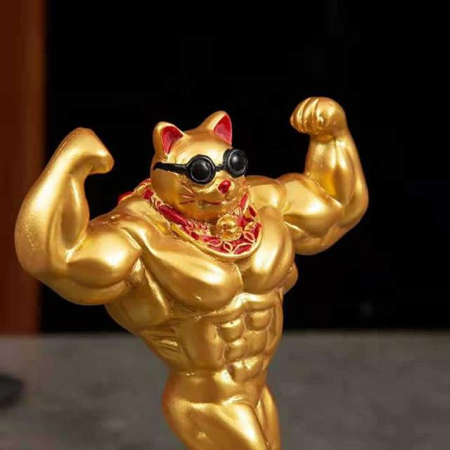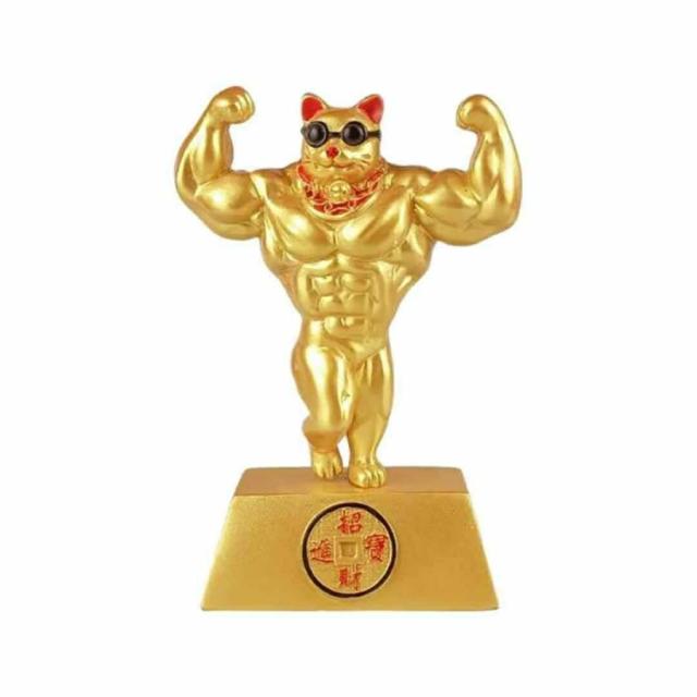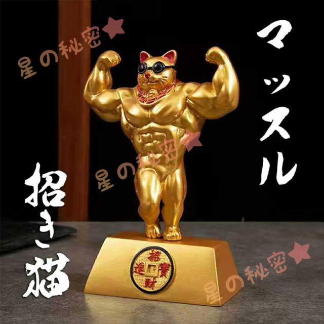 風水 置物 マッスル 招き猫 ダブルバイセップス ゴールド 招財 劫財 金風水アイテム 金運アップ 財運 金運 健康 仕事 家庭 華やか 商売繁盛
