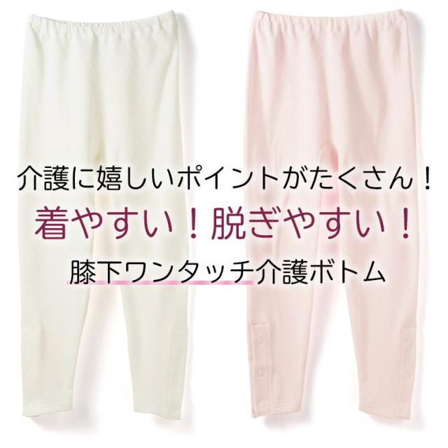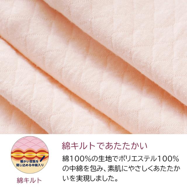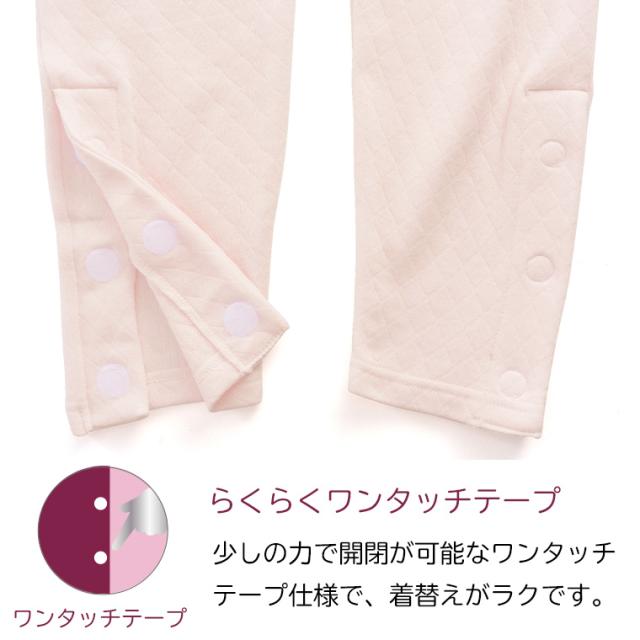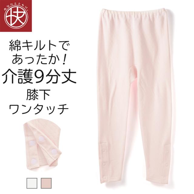 膝下ワンタッチ 9分丈ボトム 介護下着 綿キルト レディース 介護ウェア 介護衣料 ワンタッチ マジックテープ ボタン 抗菌防臭 あったか あたたかい シニア 婦人 女性 肌着 インナー 介護用品 入院用 病院用 こころよい Q9065T-E