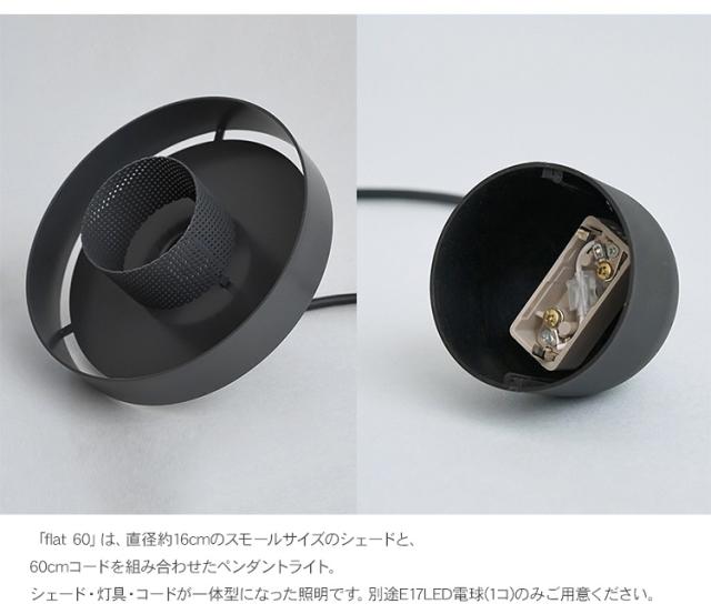 「flat 60」は、直径約16cmのスモールサイズのシェードと、60cmコードを組み合わせたペンダントライト。