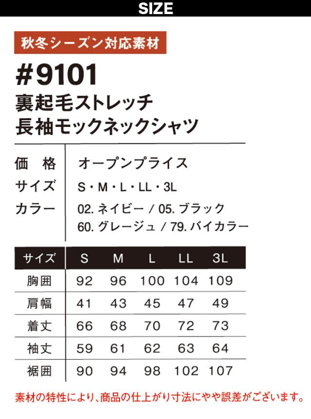 アイズフロンティア 裏起毛ストレッチ長袖モックネックシャツ 9101 裏起毛 保温 カジュアル 秋冬 作業服 作業着 かっこいい おしゃれ I’Z FRONTIER