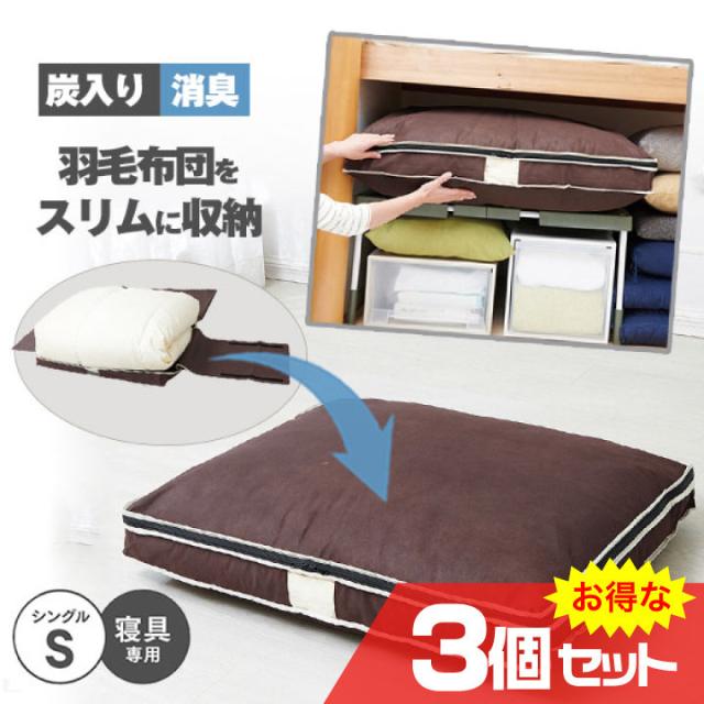 炭入り消臭羽毛布団収納ケース シングル A-03 3個セット 90x69x10cm シングル羽毛布団1枚 寝具 衣類 保管 透明窓付 隙間 収納 平置き 衣替え