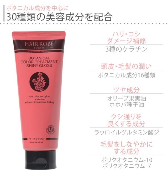 | 商品名 | ヘアローブ ボタニカルカラートリートメント シャイニーグロス |