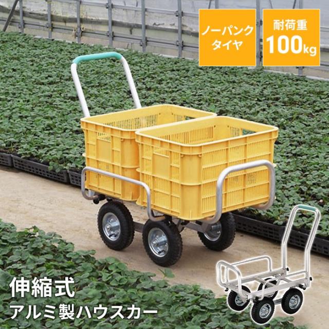 【値下げ】 アルミハウスカー 伸縮ハウスカー ノンパンクタイヤ 運搬 台車 収穫台車 アルミ運搬車 農業用台車 コンテナ台車 運ぶ 荷物運び