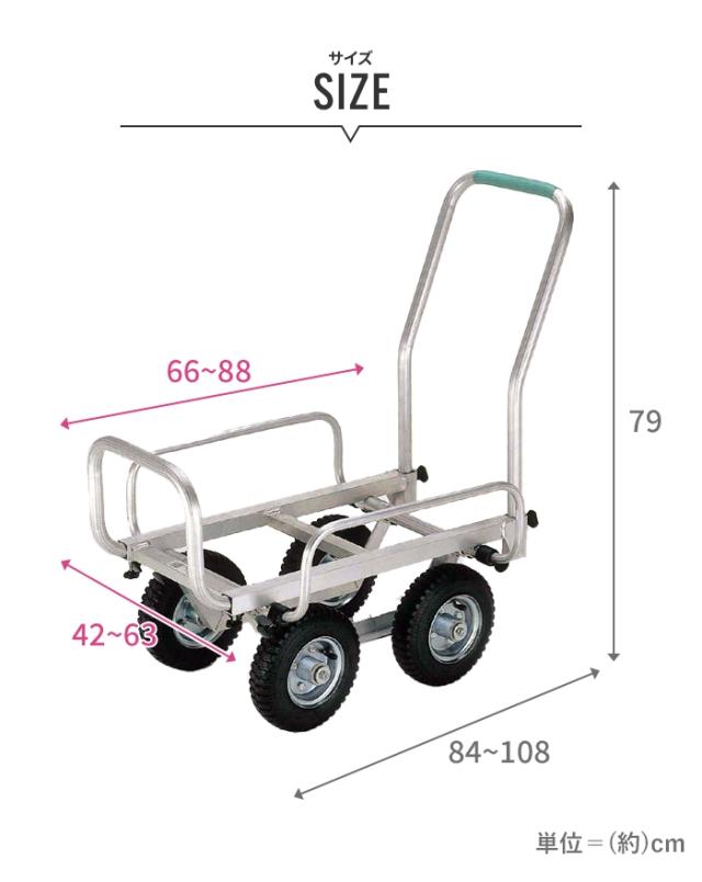 | [荷台サイズ]約幅42〜63×奥行66〜88cm 全長84〜108×高さ79cm |