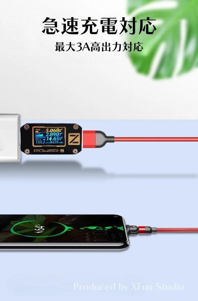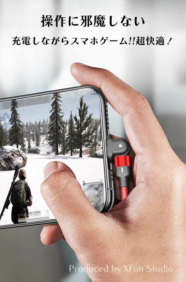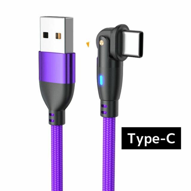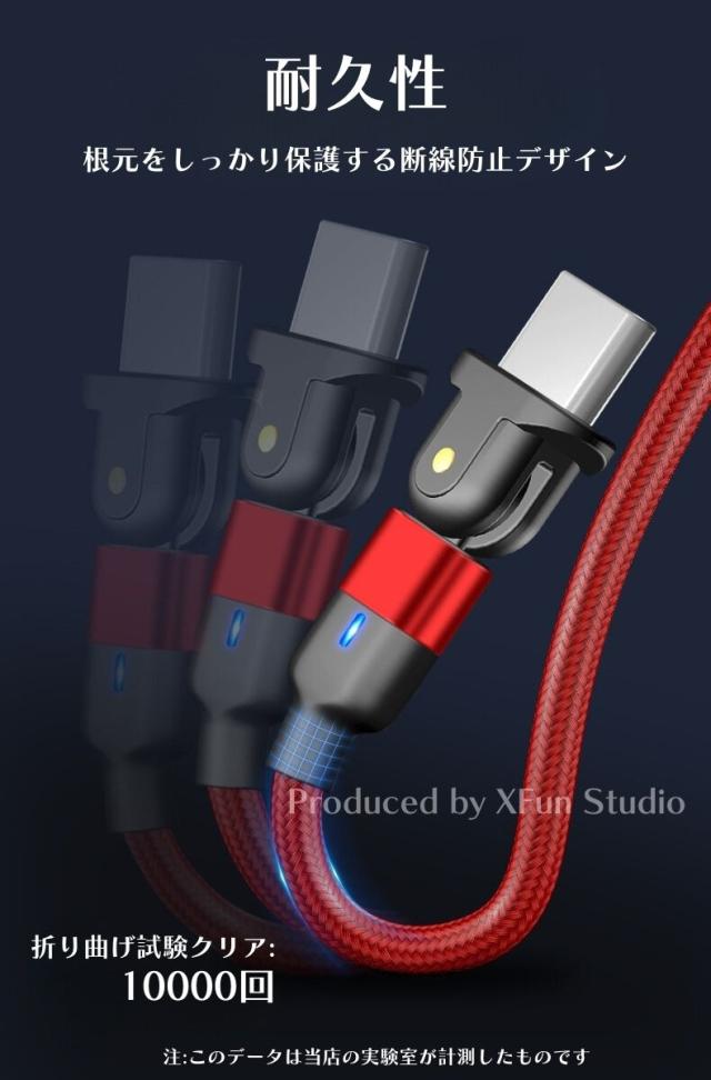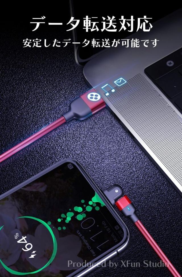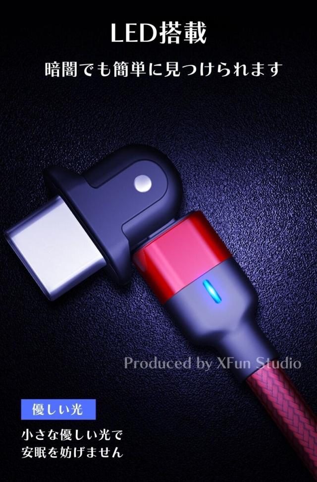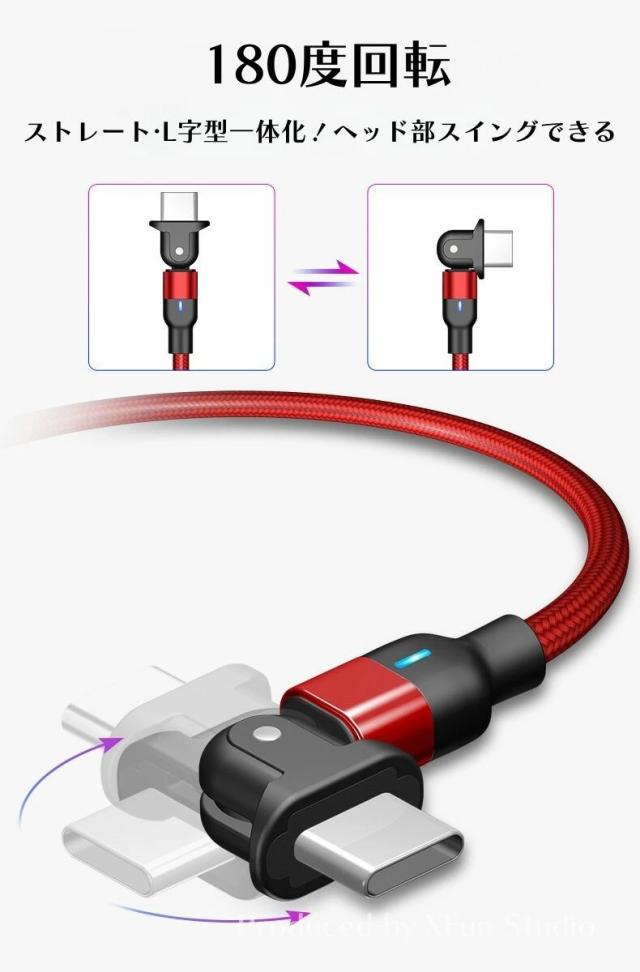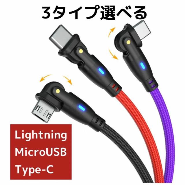 充電ケーブル 3A USBケーブル 多機種 1メートル iPhone Lightning MicroUSB Type-C Android スマホ タブレット 180度回転 可動式 LED 180度 首振り L型 1m 充電コード 充電専用 断線防止