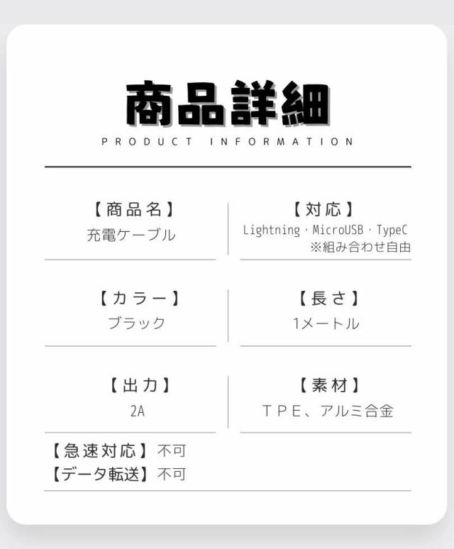 1M 充電ケーブル 1メートル ブラック ライトニングケーブル Lightning ケーブル MicroUSB ケーブル Type-C ケーブル 充電コード 長持ち 実用 ケーブル 断線防止 長さ 1M 送料無料