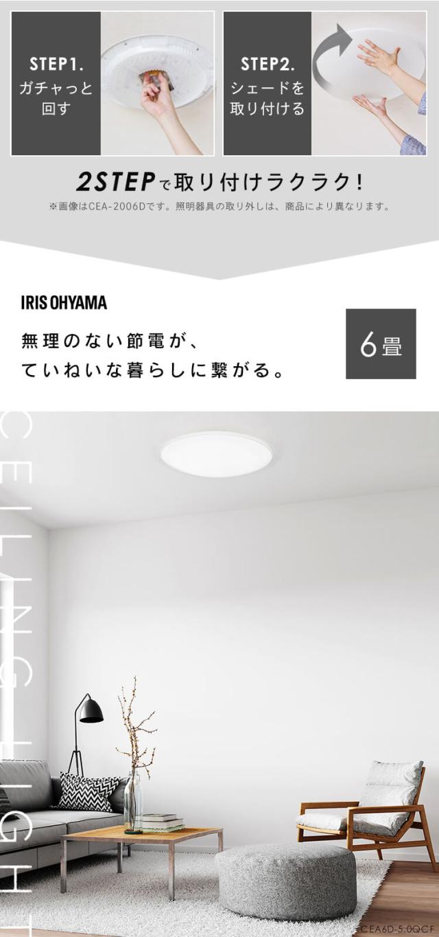 【2個セット】 シーリングライト おしゃれ 6畳 リモコン付き ledシーリングライト アイリスオーヤマ 照明 led照明 ledライト 照明器具 天井照明 led 調光 電気 明るい インテリア 洋室 和室 薄型 クリアフレーム 省エネ 節電 CEA6D-5.0QCF 新生活 *