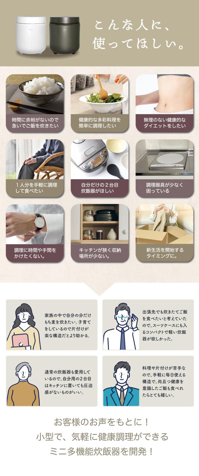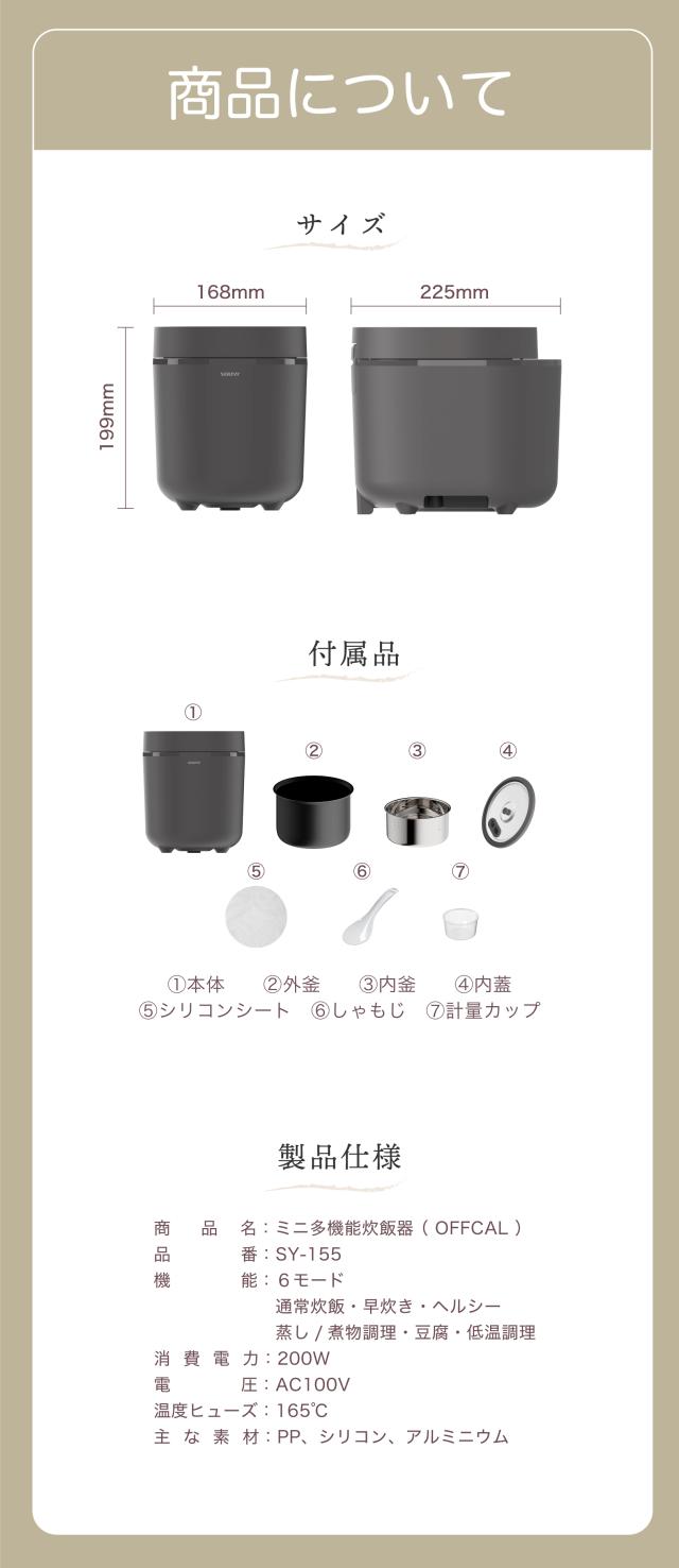 炊飯器 一人暮らし 2合炊き 小型 ミニ多機能炊飯器 SY-155 | 1人用 一人暮らし用 2合 小さい コンパクト ミニ炊飯器 早炊き 炊きたて おいしい おしゃれ おしゃれコンパクト 炊飯 炊飯ジャー ジャー 米 お米 玄米 雑穀米 無洗米 おかゆ 学生 単身赴任 新生活 ホワイト