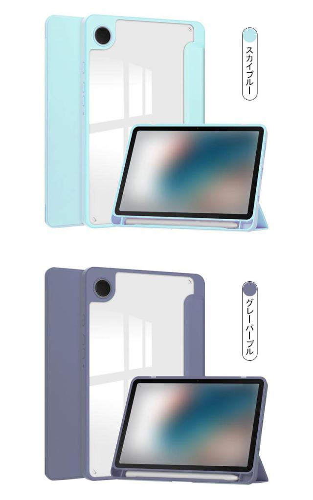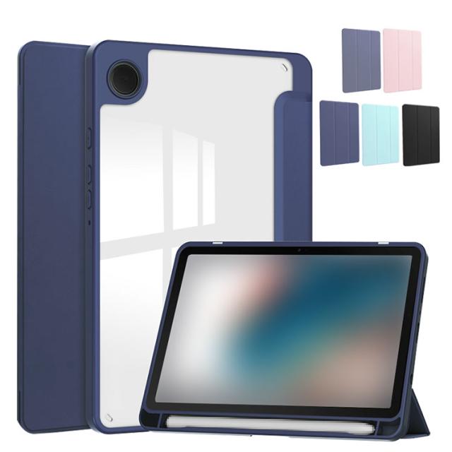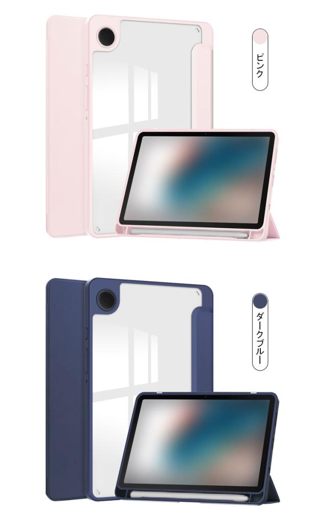 Galaxy Tab A9 ケース 8.7インチ 手帳型 カバー PUレザー 背面透明 スタンド機能 ペン収納 サムスン ギャラクシー タブ A9 衝撃吸収 シンプル タブレットケース タブレットカバー