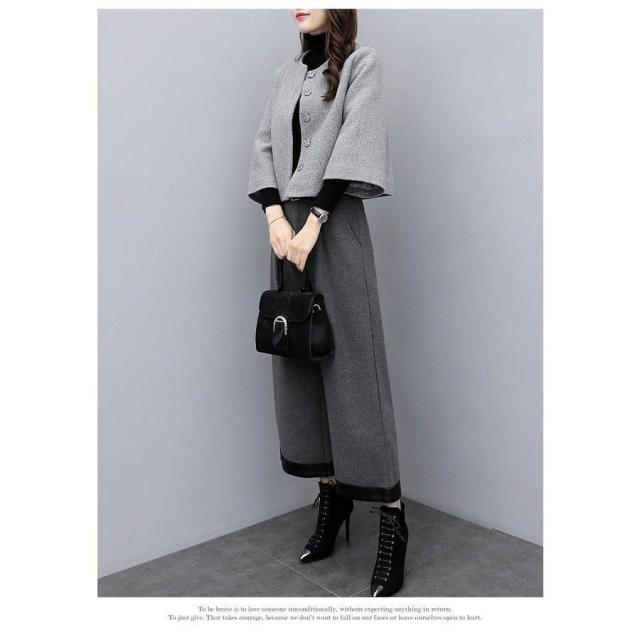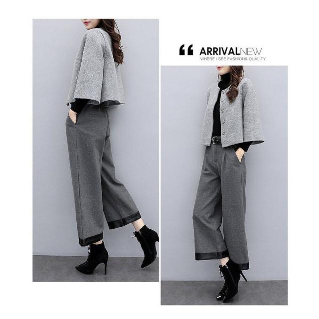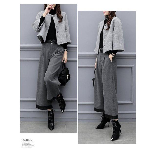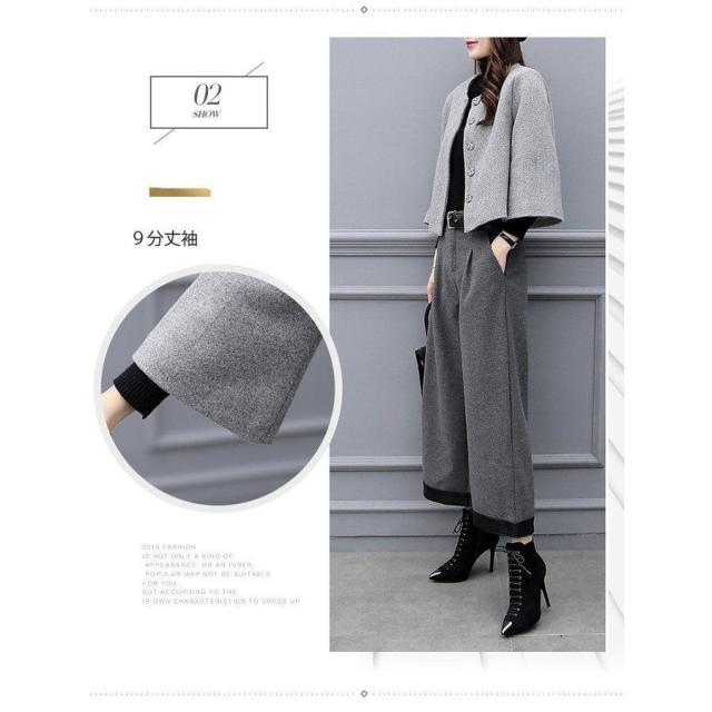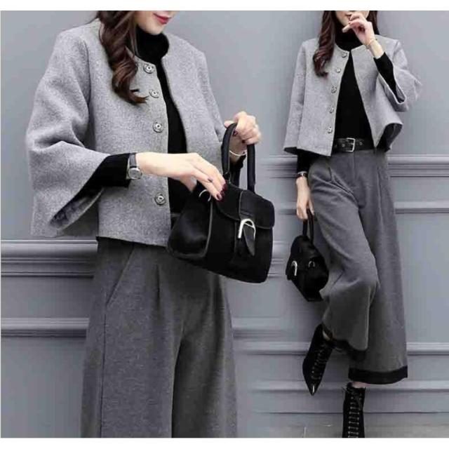 パンツスーツ レディース セットアップ 秋冬 ジャケット 七分袖 ワイドパンツ カジュアル 通勤 入学式 卒業式 30代 40代 50代