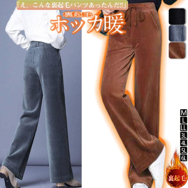 ワイドパンツ レディース パンツ 裏起毛あり 裏起毛なし ロングパンツ 無地 リブ 秋冬 ボトムス 大人 ガウチョパンツ ゆったり 40代 ママ