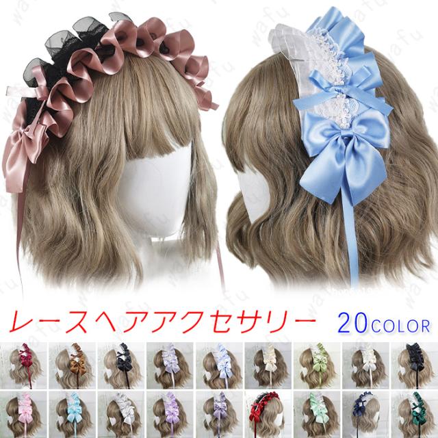 カチューシャ (#h12) ロリータ 日本国内 当日発送 20color リボン ゴスロリ コスプレ ヘッドドレス メイド 髪飾り