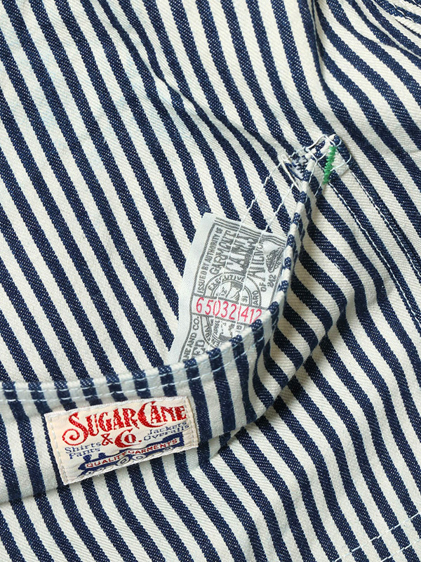 SUGAR CANE 11oz. HICKORY STRIPE WORK PANTS シュガーケーン 11オンス ヒッコリーストライプ ワークパンツ 【SUGAR CANE(シュガーケーン)】 「サトウキビ」という名を持つこのブランドこそ、 日本に誕生した初めての米軍向け衣料メーカーである。当時米軍基地に駐屯していた 将校によって「SUGAR CANE」と名付けられる。SUGAR CANEの誕生は日本でありながら、 米軍基地を相手に育っただけにその精神も物作りのノウハウも本場仕込み。 アメリカのシンボルとも言えるデニム素材を中心とした本格仕込みのワークウェアを作り続けている。 ヴィンテージ同様、旧式のシャトル織機で織り上げたハリのある11オンスのヒッコリーストライプ生地のワークパンツ。 ストライプ柄のネイビーの部分はロープ染色したインディゴであり、経年変化でデニムのように褪色。 長年着用を繰り返すことでエイジングにも期待できる。 | ||||||||||||||||||||||||||||||||||||||||||