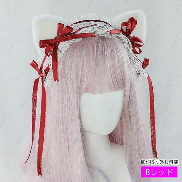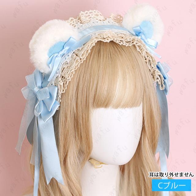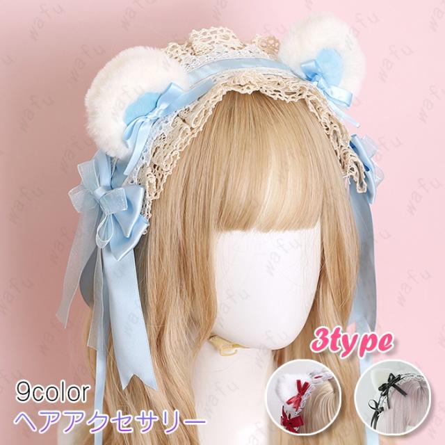 h17#ヘッドドレス 日本国内当日発送 ロリータ 髪飾り 猫耳 かわいい ネコ耳 カチューシャ リボン ゴスロリ コスプレ ヘアアクセサリー lolita ハロウィン レース