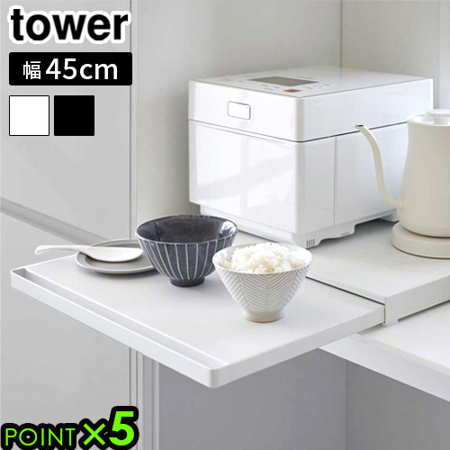 タワー 山崎実業 tower キッチン家電下スライドテーブル 2105 2106 YAMAZAKI レンジ台 トースター台 引き出し 作業台 作業用スペース キッチンツール 調理スペース レンジテーブル スライドラック テーブル 省スペース【送料無料★P5倍】