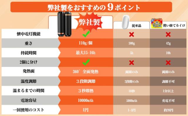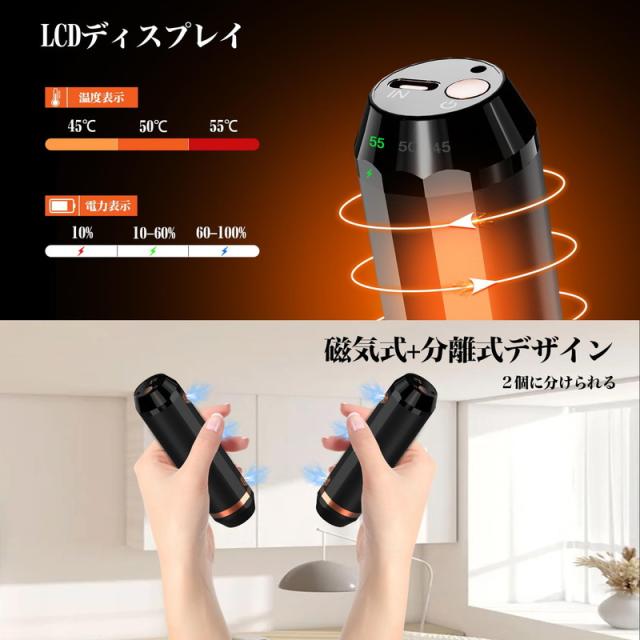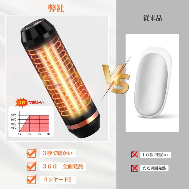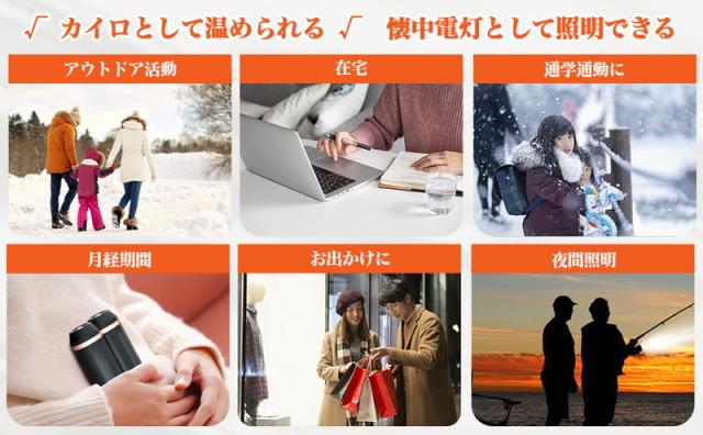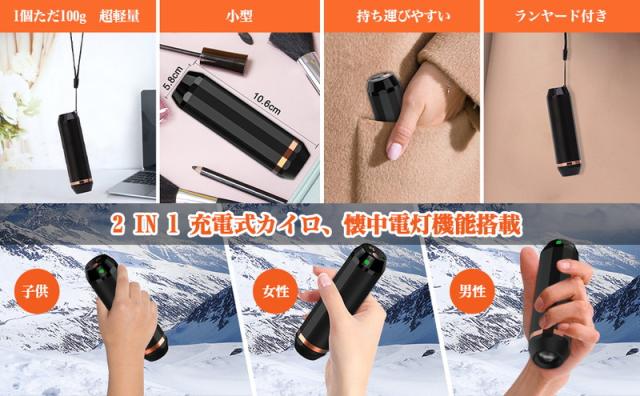 充電式カイロ 電気カイロ 磁気式・1台2役・懐中電灯機能 360°全面発熱 3階段温度調節 3秒急速発熱 大容量10000mAh 冬 防寒 ギフト