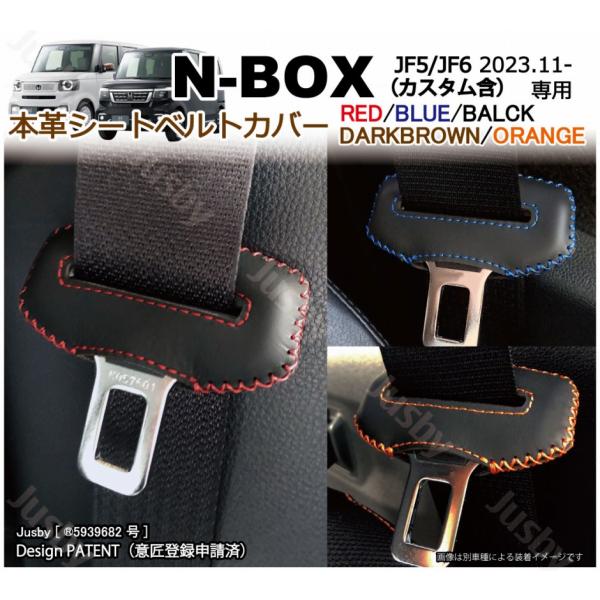 ホンダ 新型 N-BOX JF5 JF6 用 本革シートベルトカバー レザーカバー 赤 青 黒 ステッチ ドレスアップ 異音&傷防止 パーツ アクセサリー 本皮 カスタム NBOX