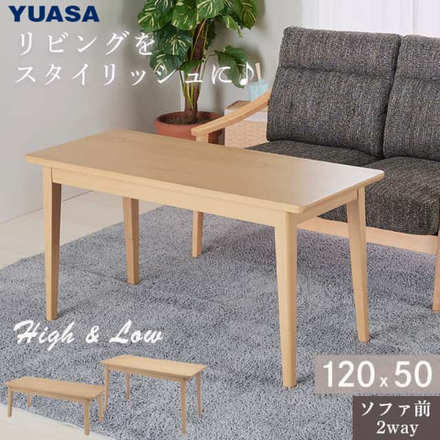 ユアサプライムス 2Wayこたつテーブル ハイタイプ ロータイプ 長方形 120×50cm フェリス120E(NA) おしゃれなセンターテーブル YUASA