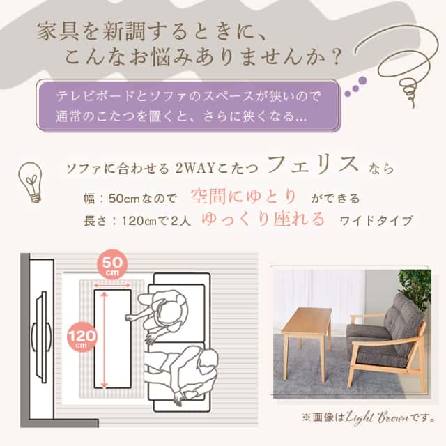 ソファに合わせる 2Wayこたつ フェリス120