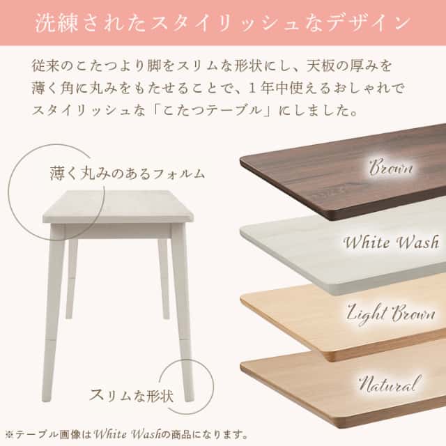 ・一般的な長方形120cmサイズのこたつ布団が使用できる。