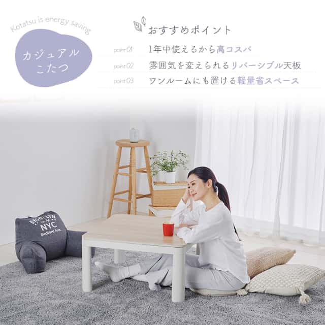 ユアサプライムス こたつテーブル NCK-700E(NIV) カジュアルこたつ 70×70cm 正方形 おしゃれなリバーシブル天板 リビングコタツ YUASA