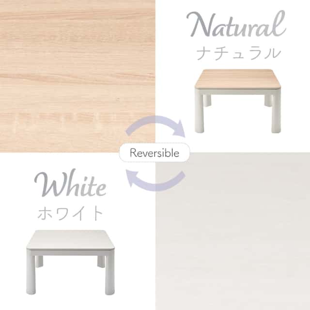 - 気分やお部屋に合わせて雰囲気を変えられるリバーシブル天板。