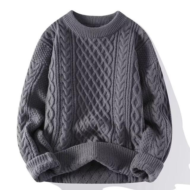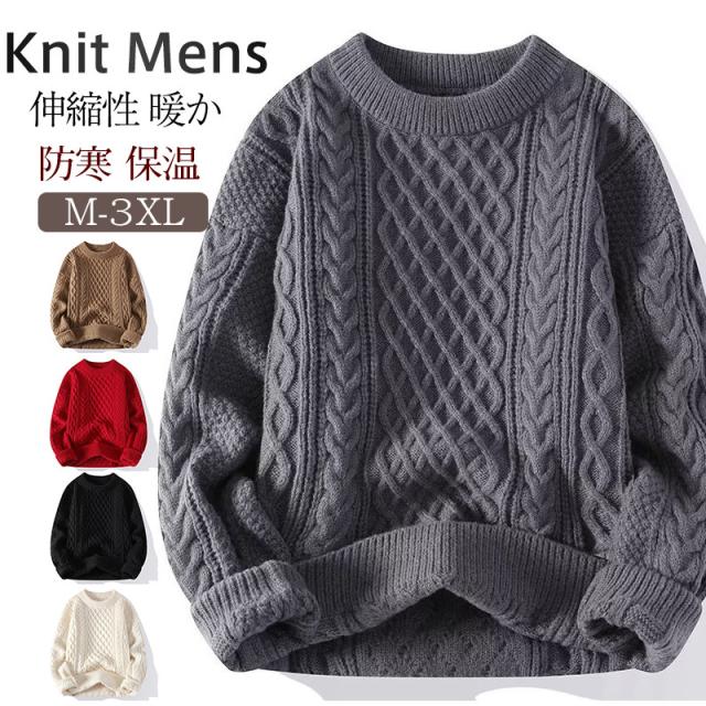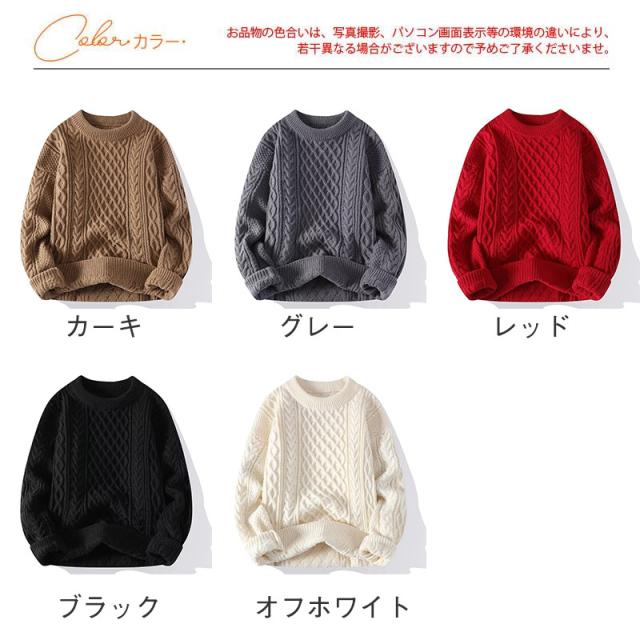 ニットセーター メンズ ニット セーター クルーネック プルオーバー ケーブルニット アウター 厚手 暖か 無地 ゆったり 通学