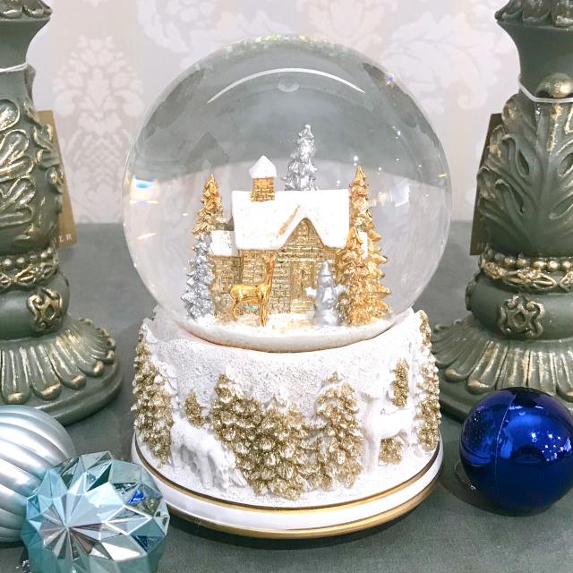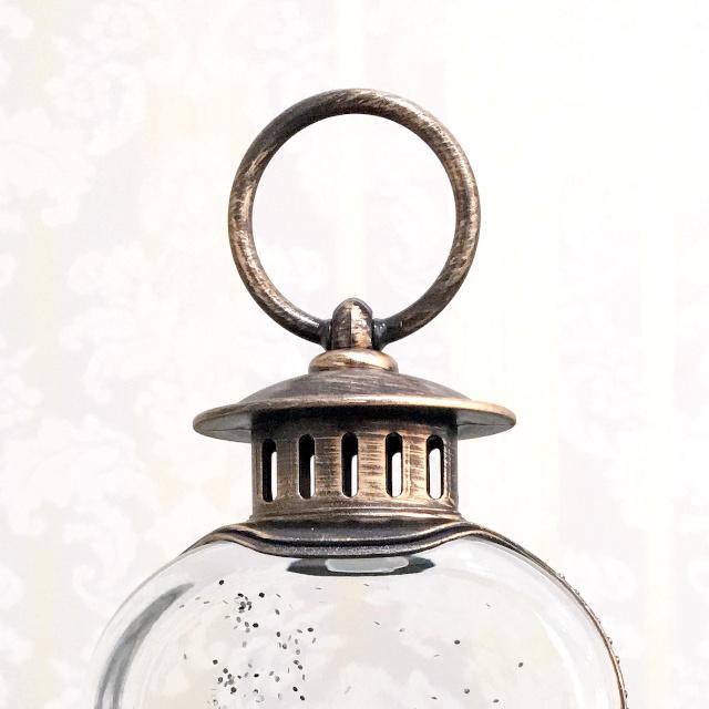 クラシカルなランタンの中に森にたたずむ大きなクリスマスツリーと家々が再現された高級感のあるクリスマスオブジェ。 |