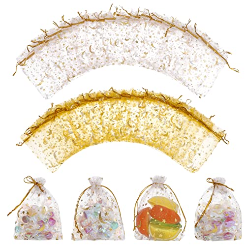 Hitchlike ラッピング 袋 オーガンジー 巾着袋 約50枚入 ギフトバッグ 星と月 可愛い 透明 無地 小物入れ 小分け袋 ジュエリー