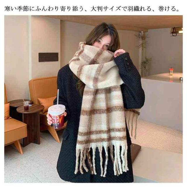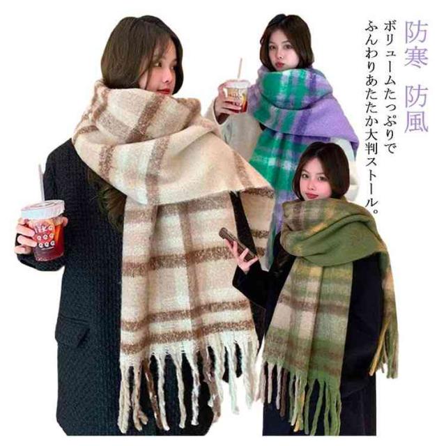 大判ストール ストール 大判 厚手 冬 マフラー レディース チェック かわいい チェック柄 チェックストール フリンジ付き ネックウォーマー 大きい もこもこ ふんわり 起毛感 あったかい 秋冬 秋 学生 羽織り カジュアル ギフト クリスマス プレゼント 防寒