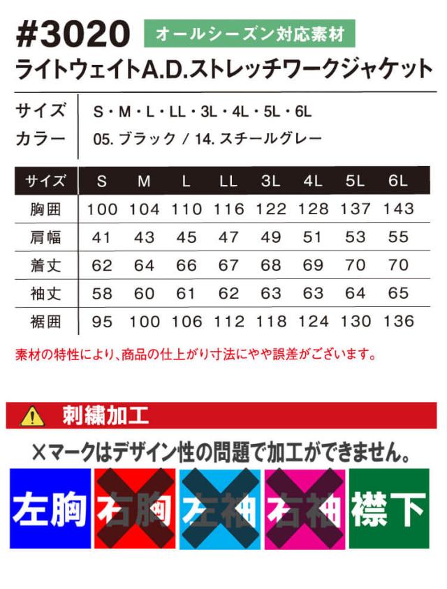 アイズフロンティア IZ FRONTIER ストレッチワークジャケット 3020 通年 作業服