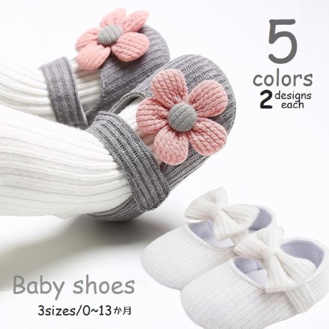 ベビーシューズ ファーストシューズ ルームシューズ 赤ちゃん 女の子 靴 室内履き リボン フラワー 甲ストラップ ソフト マジ